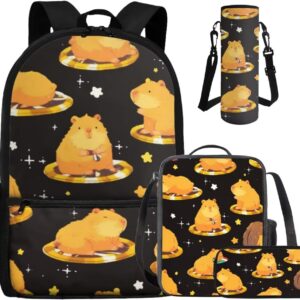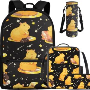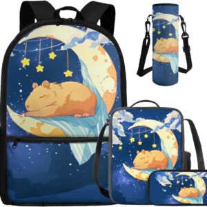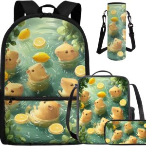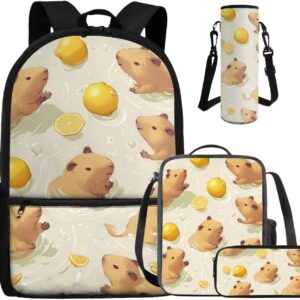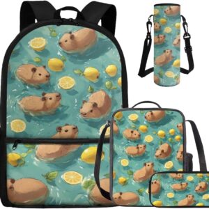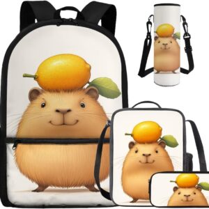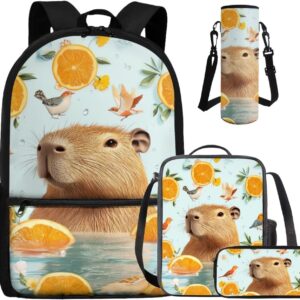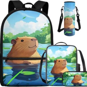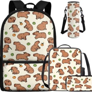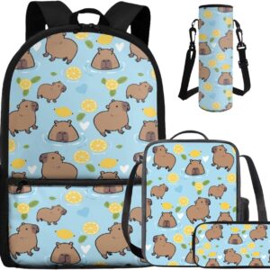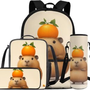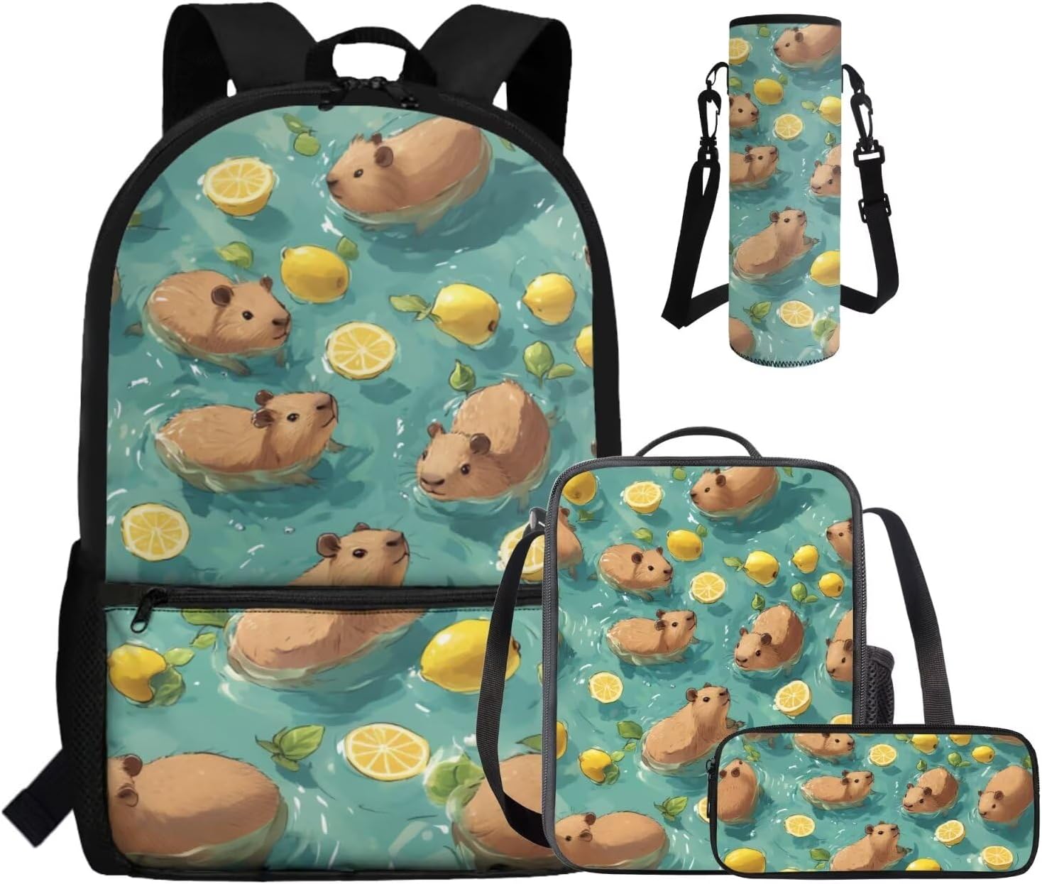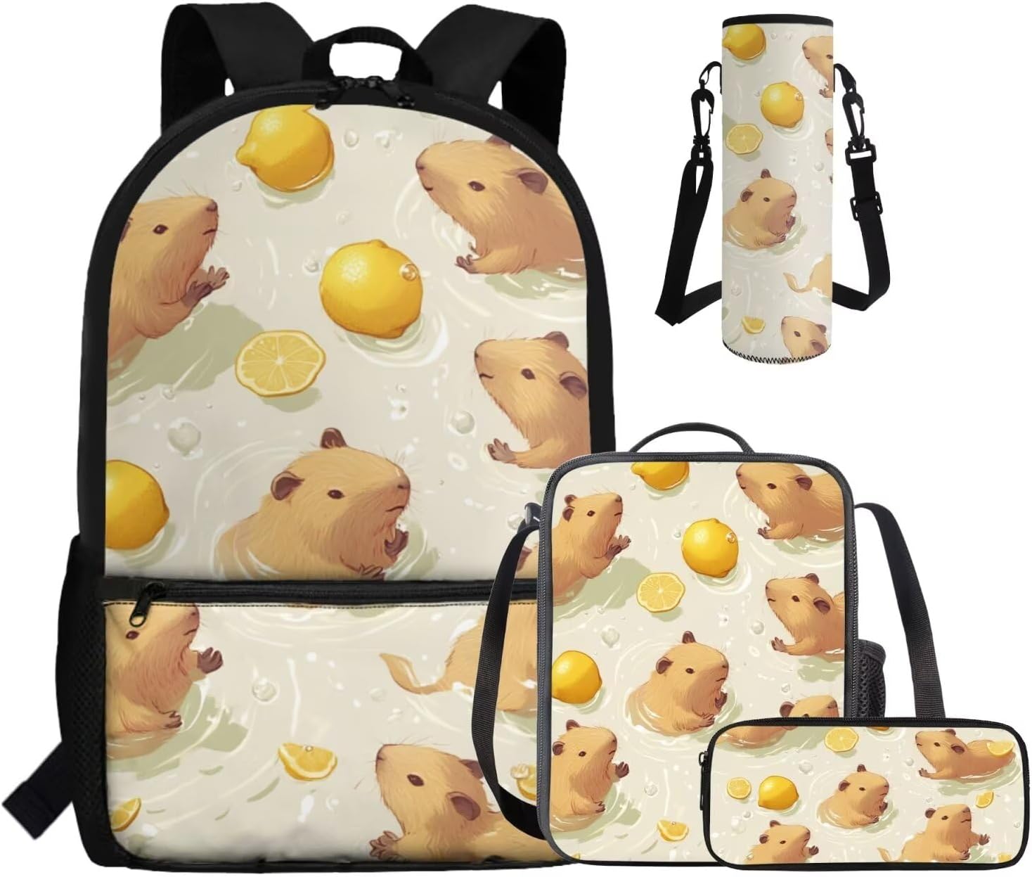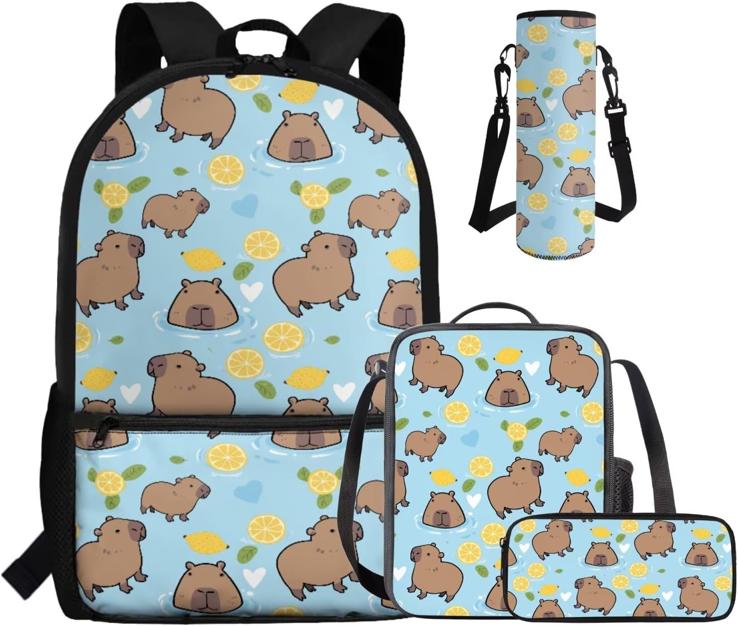 - Large Capacity School Bag Set: The stylish bookbag has a zippered compartment that can store books, textbooks, phones, etc. in an orderly manner, and there is an inner pocket for storing small items, and two side mesh pockets for storing water bottles or umbrellas; The lunch bag has double zippers and one mesh bottle pocket on one side; The pen pouch keeps pencils and cards organized; The cup sleeve suitable for large water cups