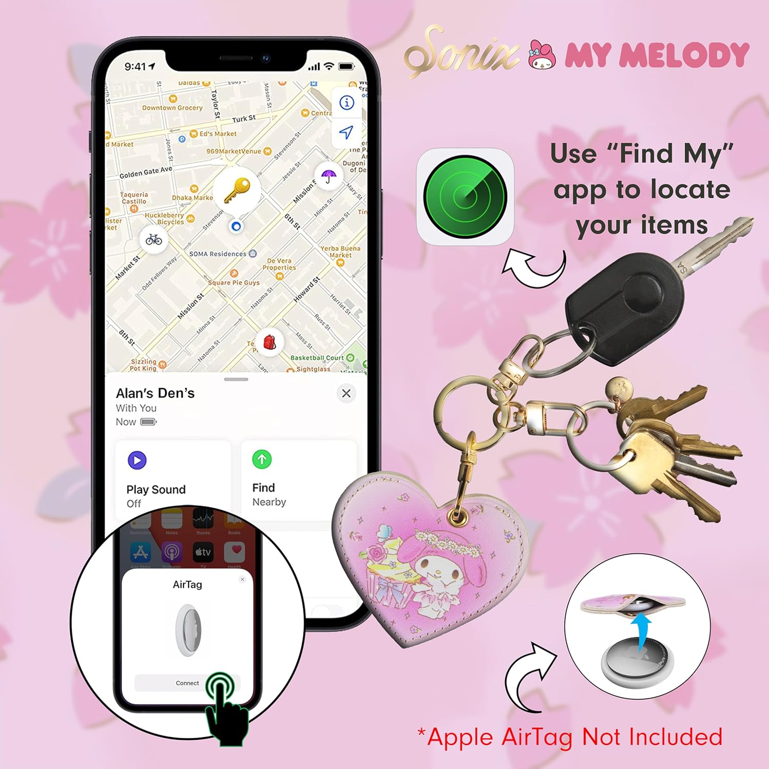 Sonix x Sanrio Plush Phone Wallet – Fuzzy Character Crossbody Bag (My Melody) + AirTag Keychain Cover (My Melody Fairy 50th Anniversary)