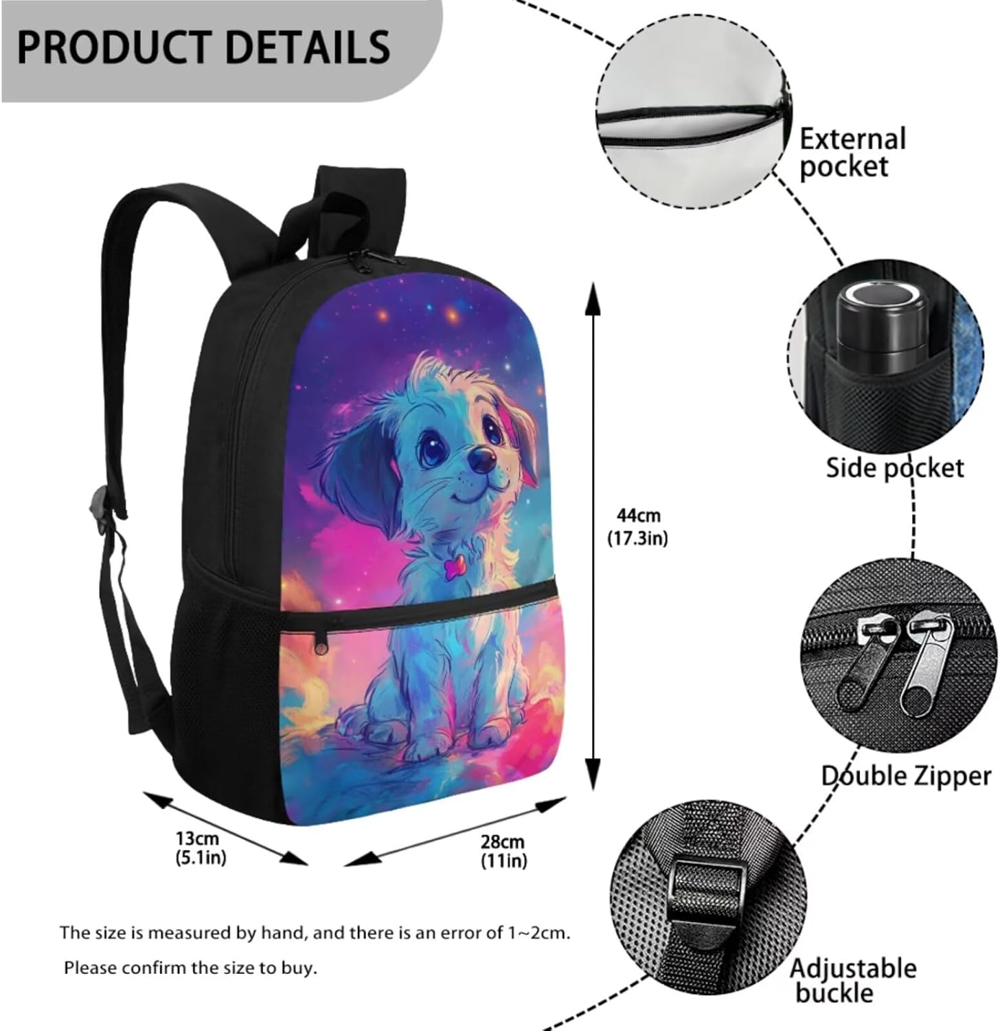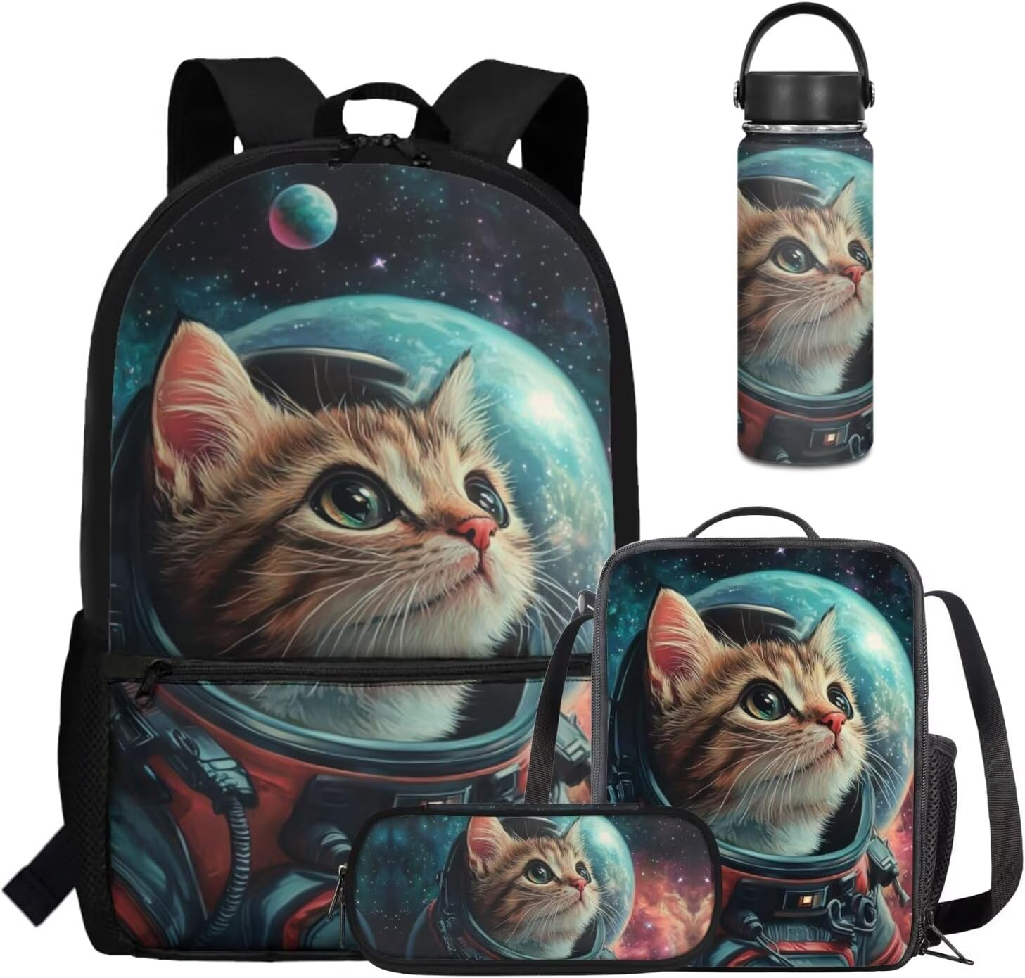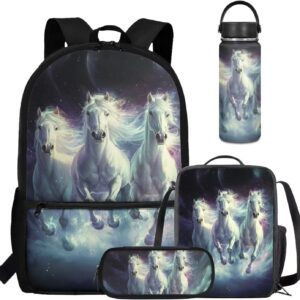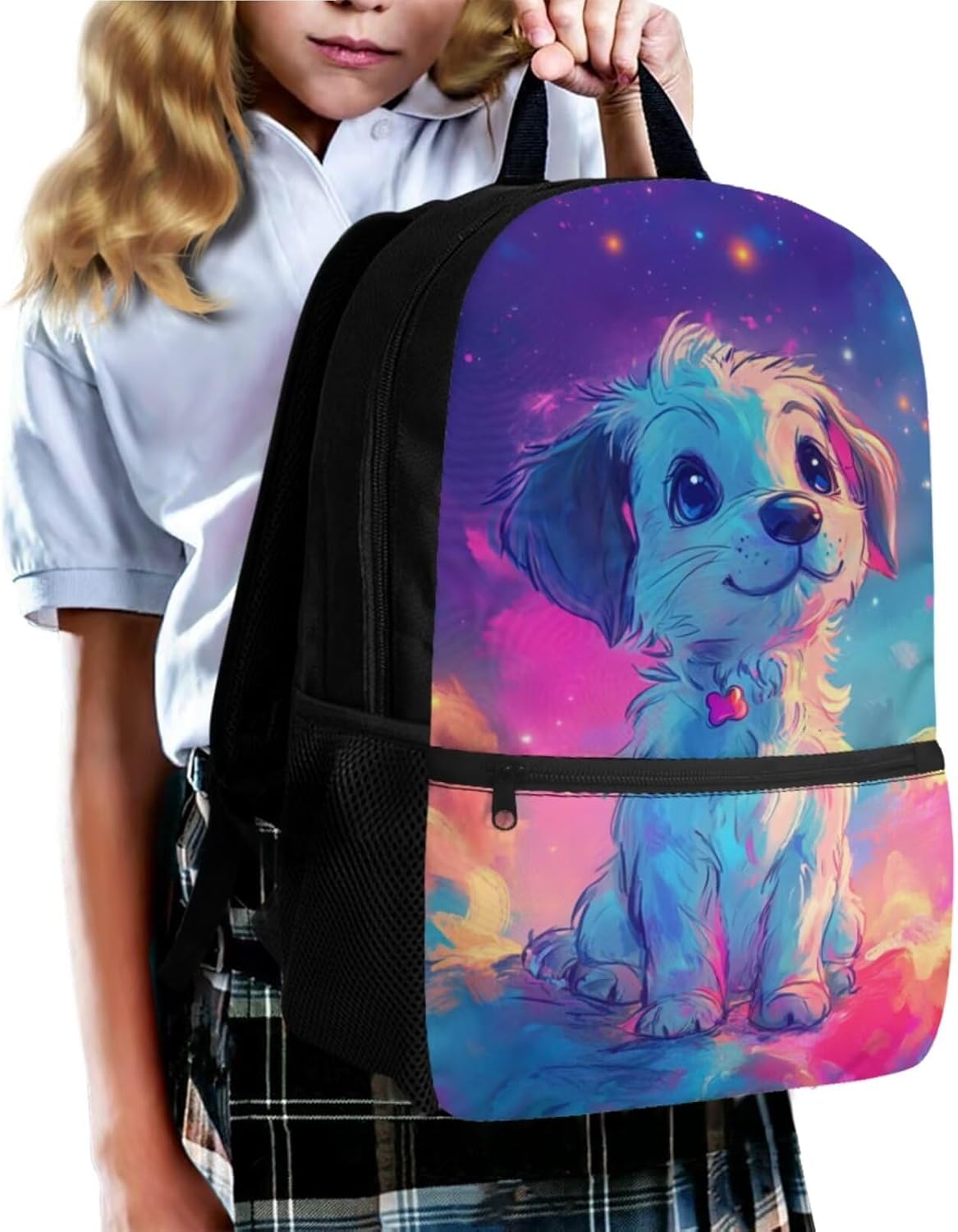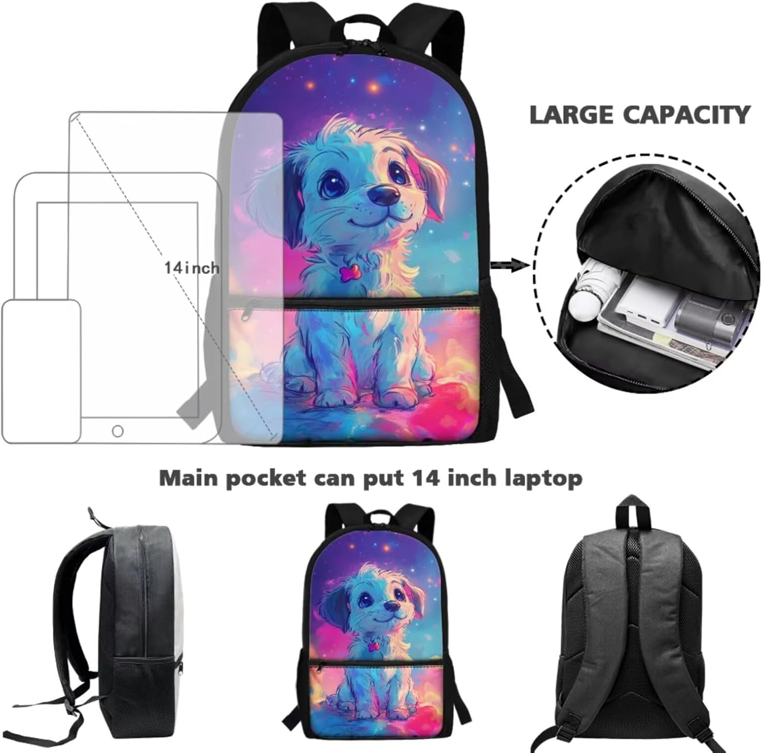 Viewamoon 4 In 1 Kawaii Dog Backpack for Kids Girls 4-6 with Lunch Box Corgi Space Bookbag for Toddler Middle School Large Capacity School Bag Set for Girls Large Pencil Case for Birthday Gifts
