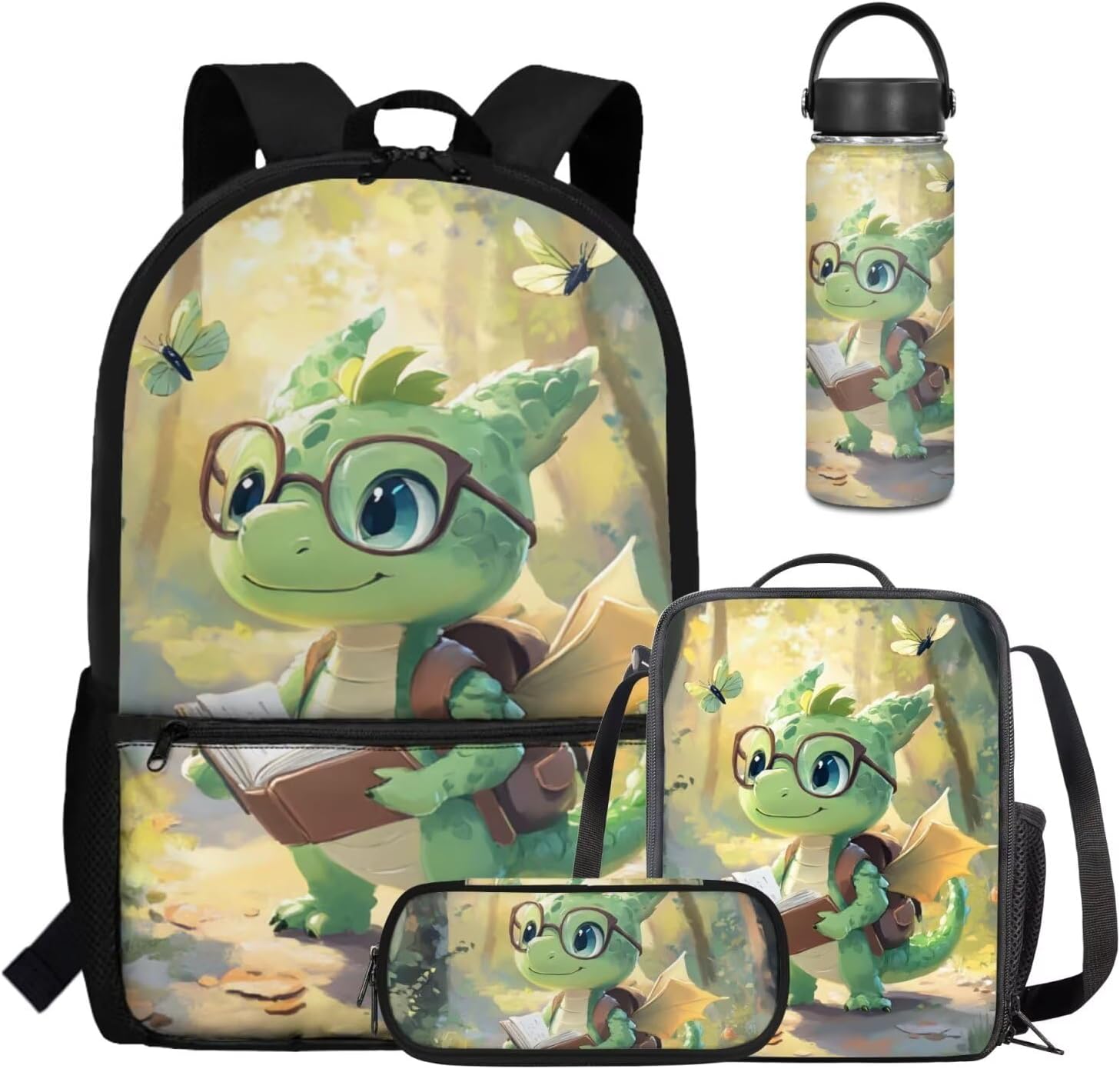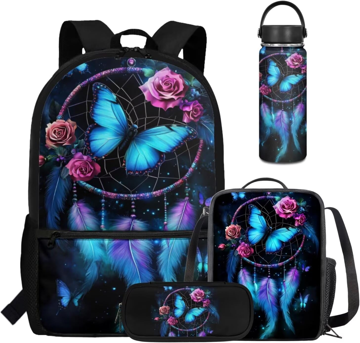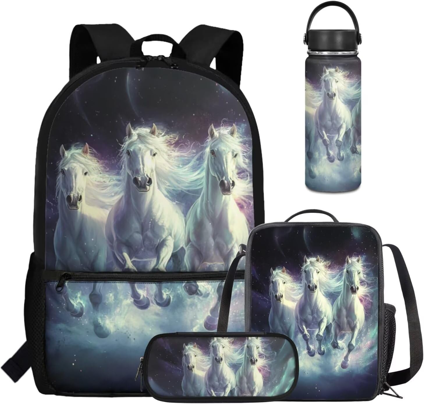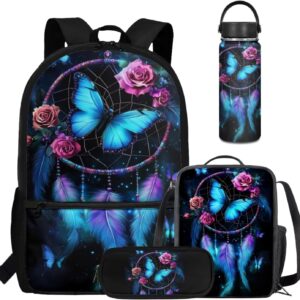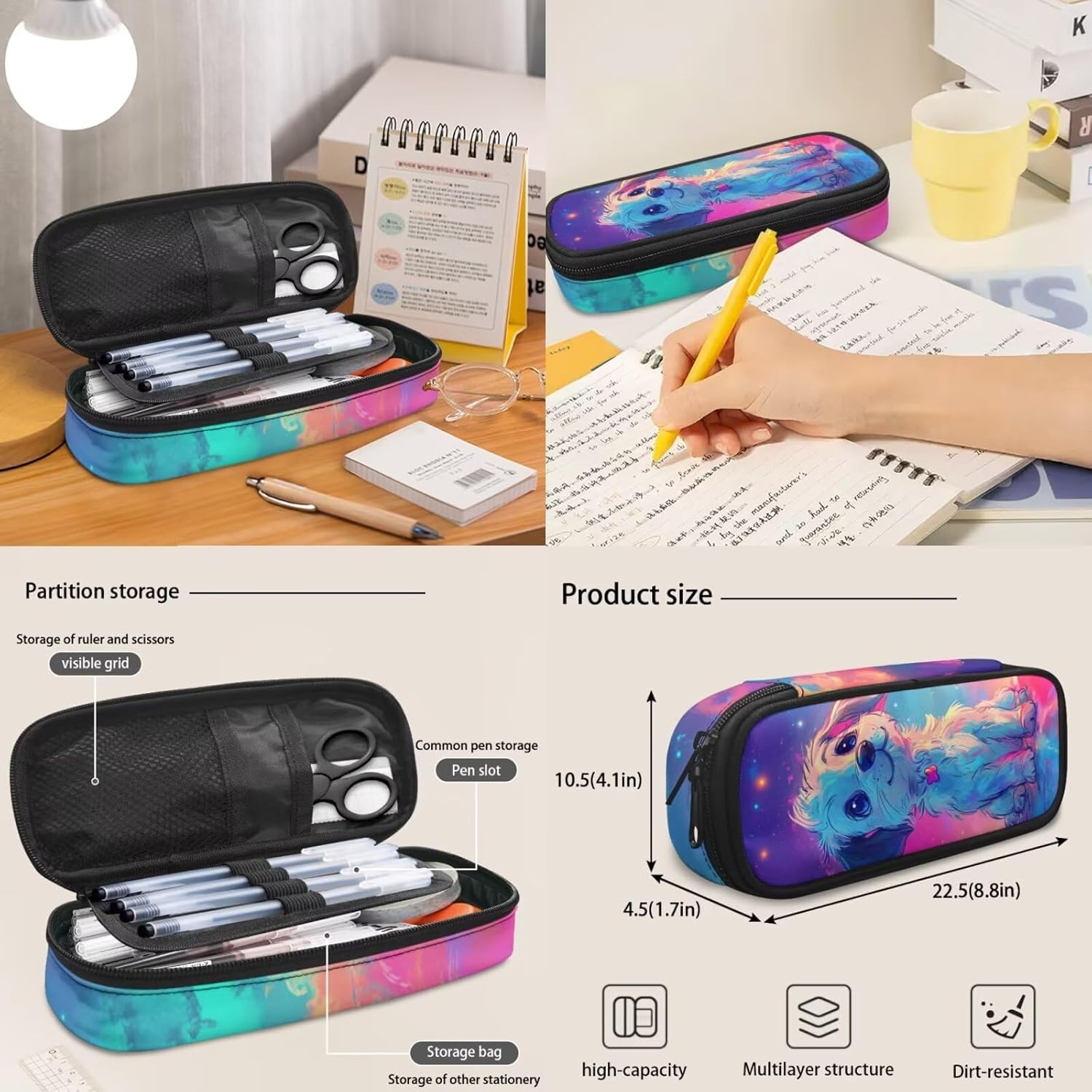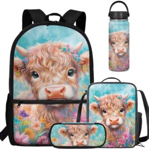 Viewamoon 4 In 1 Kawaii Dog Backpack for Kids Girls 4-6 with Lunch Box Corgi Space Bookbag for Toddler Middle School Large Capacity School Bag Set for Girls Large Pencil Case for Birthday Gifts