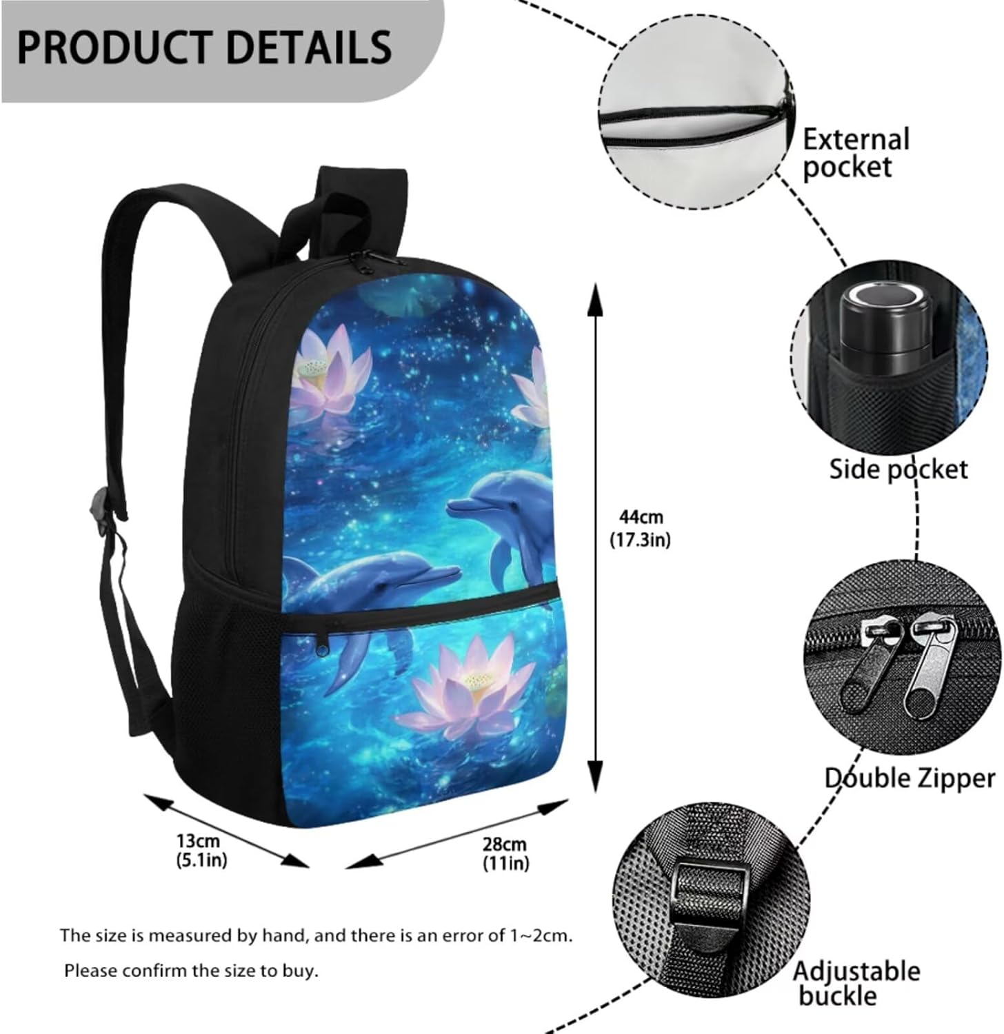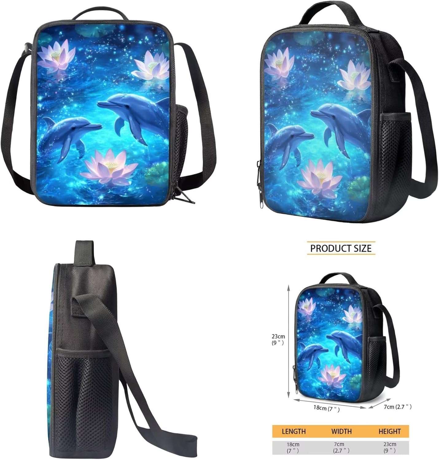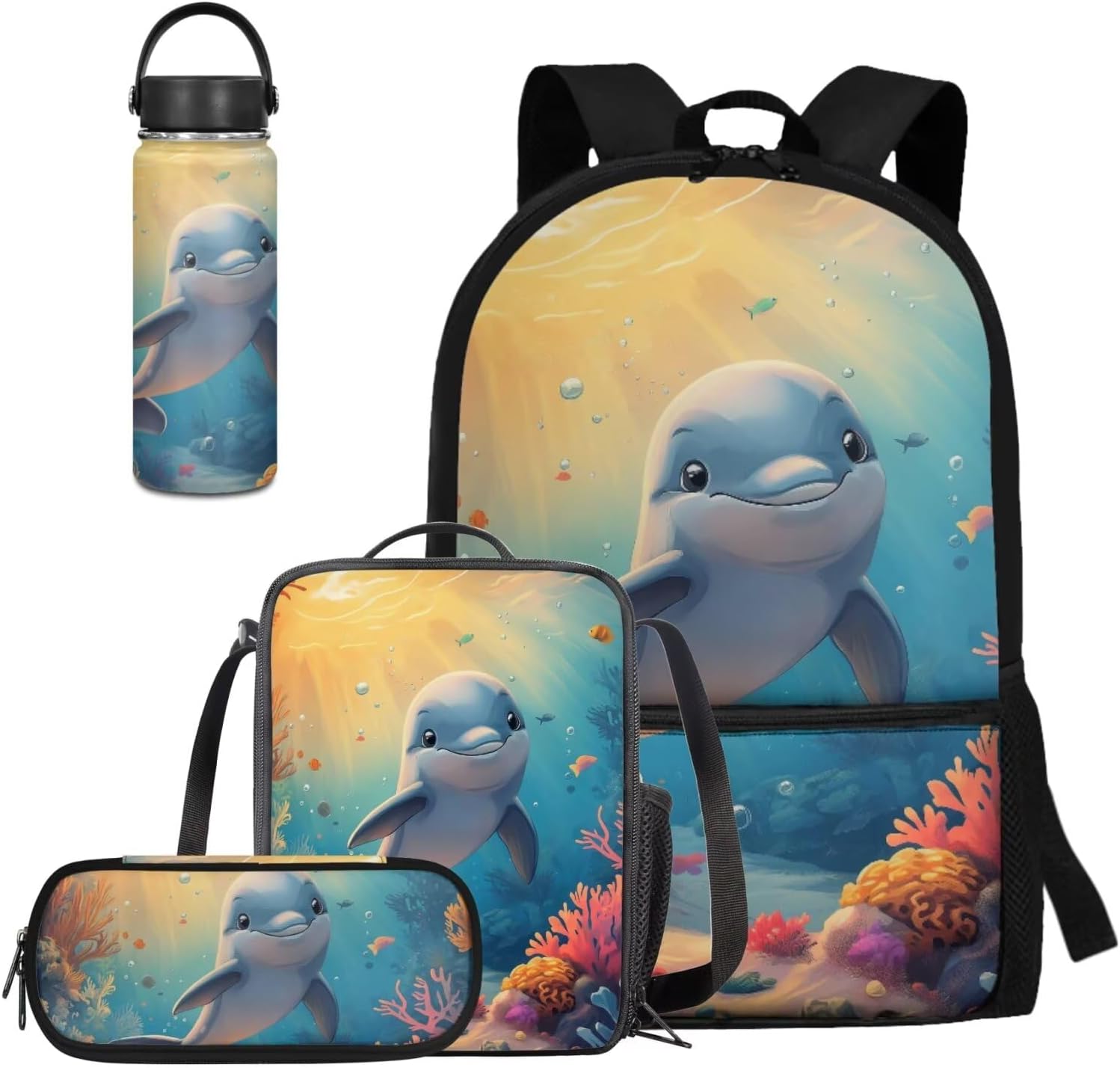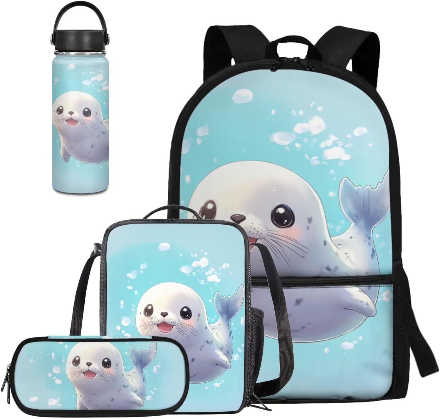 - Fashion School Bag Set 4 In 1: The Backpack set includes a large-capacity 17-inch double-zipper school bag, a portable insulated lunch bag, an insulated mug, and a water bottle holder with a shoulder strap. Perfect for kids, this set is ideal for school, travel, and everyday use,The insulated mug and sleeve can be combined to protect the mug while adding a stylish touch