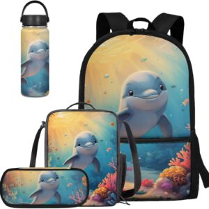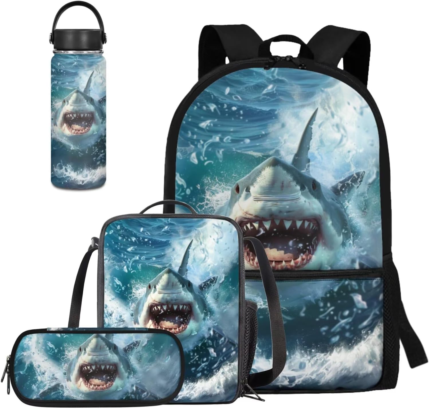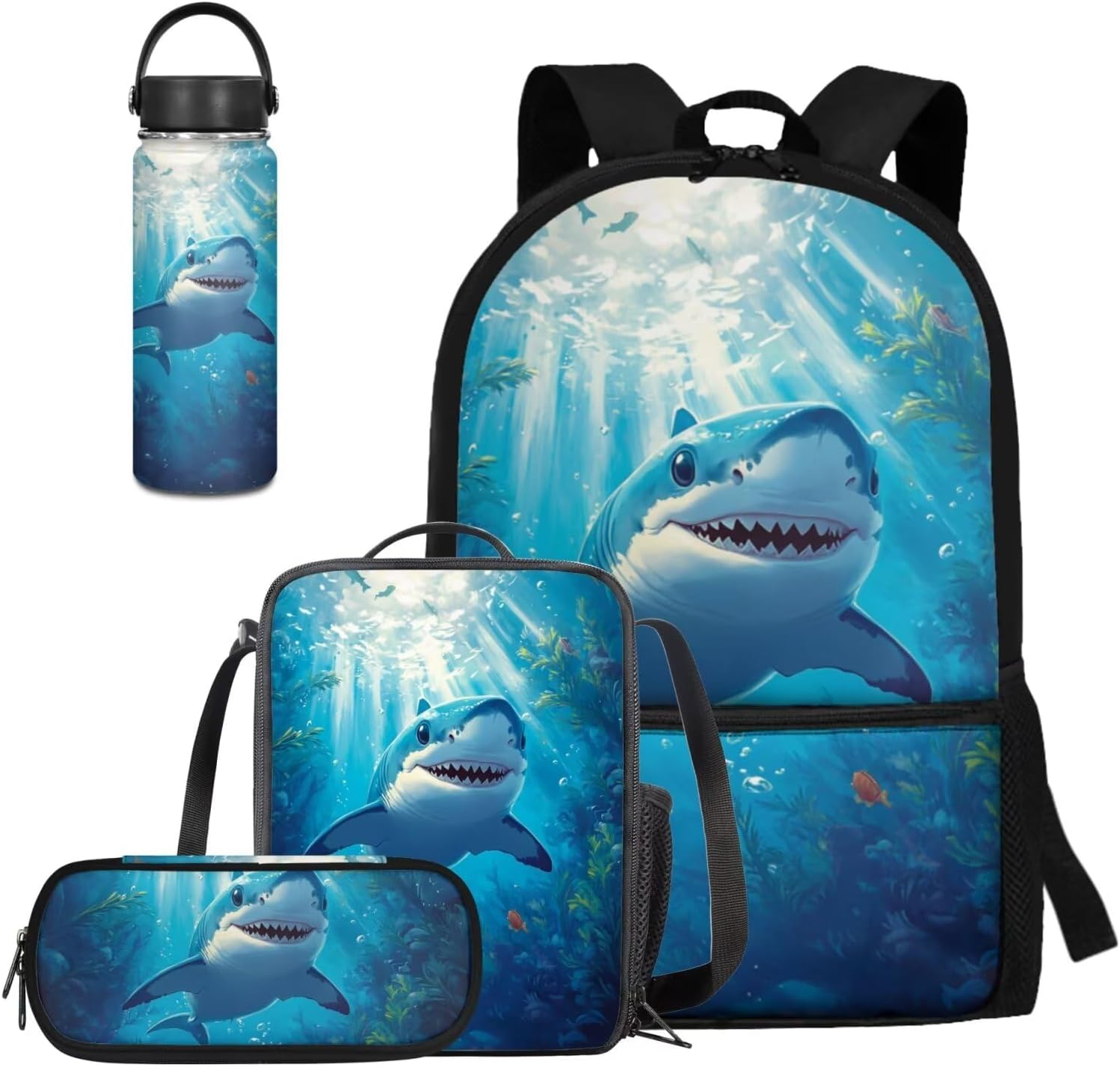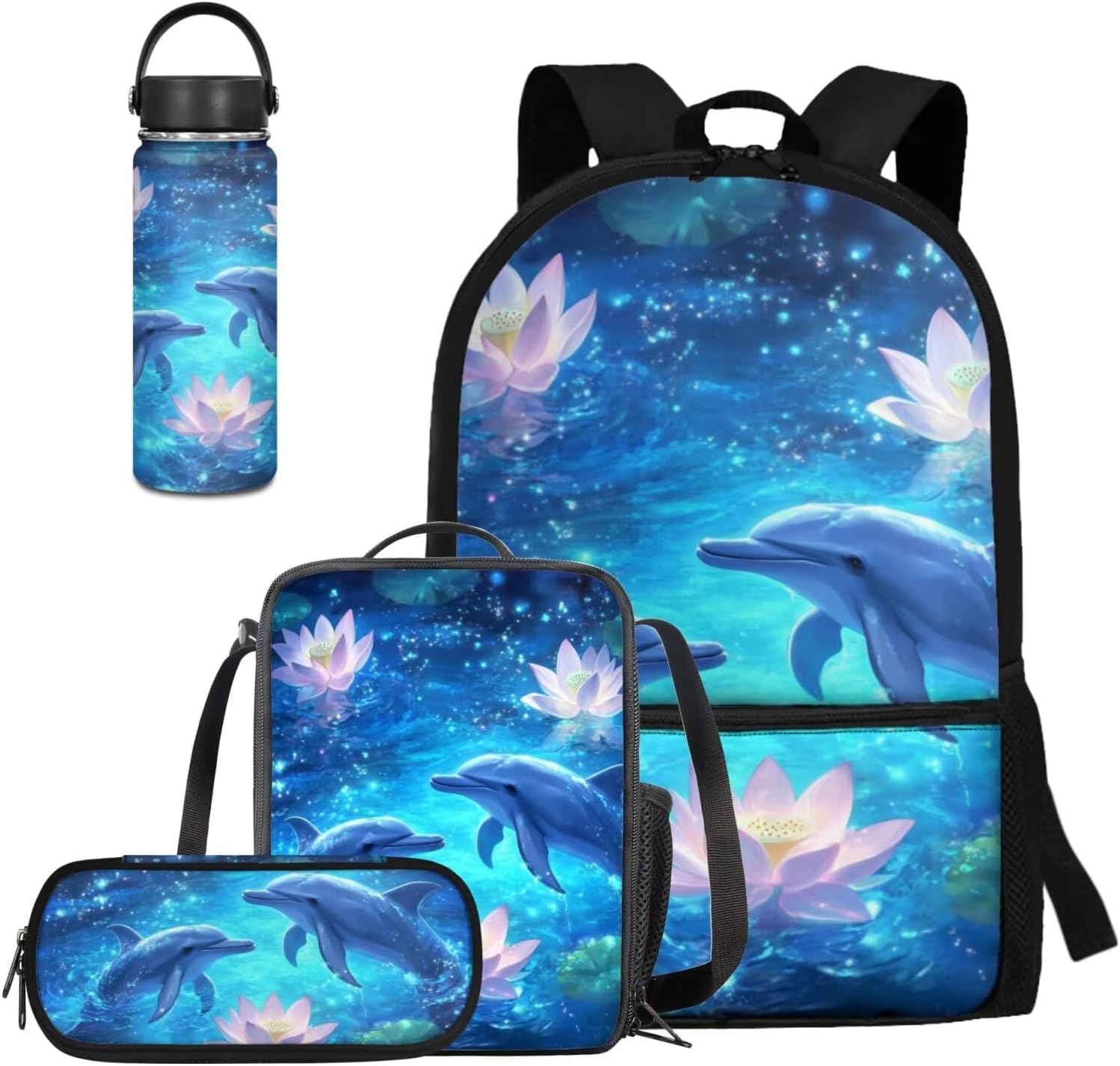 - Fashion School Bag Set 4 In 1: The Backpack set includes a large-capacity 17-inch double-zipper school bag, a portable insulated lunch bag, an insulated mug, and a water bottle holder with a shoulder strap. Perfect for kids, this set is ideal for school, travel, and everyday use,The insulated mug and sleeve can be combined to protect the mug while adding a stylish touch