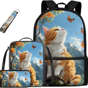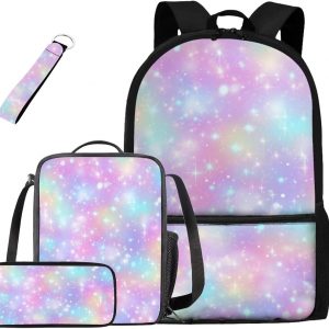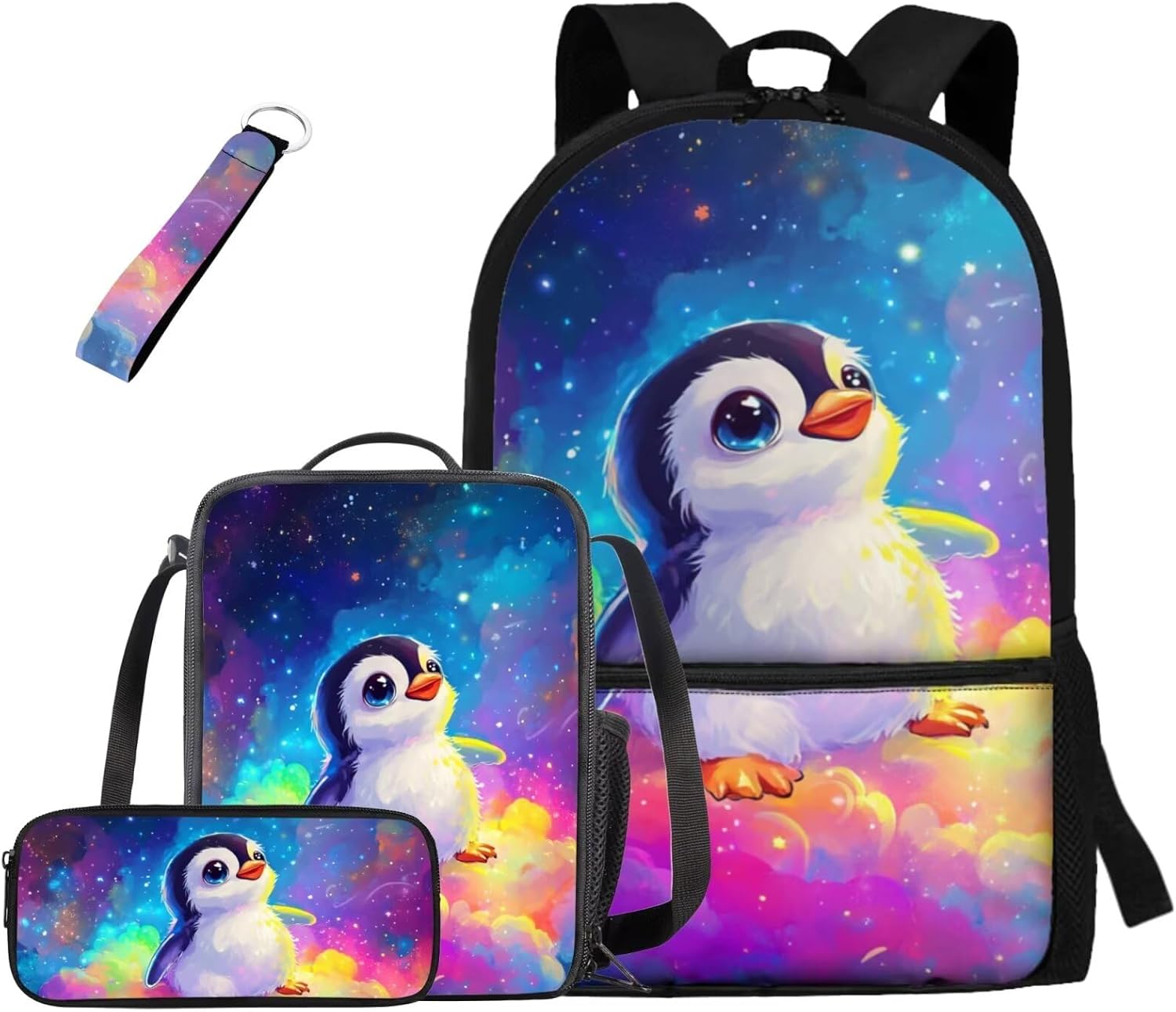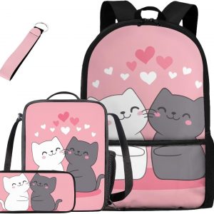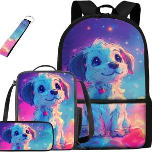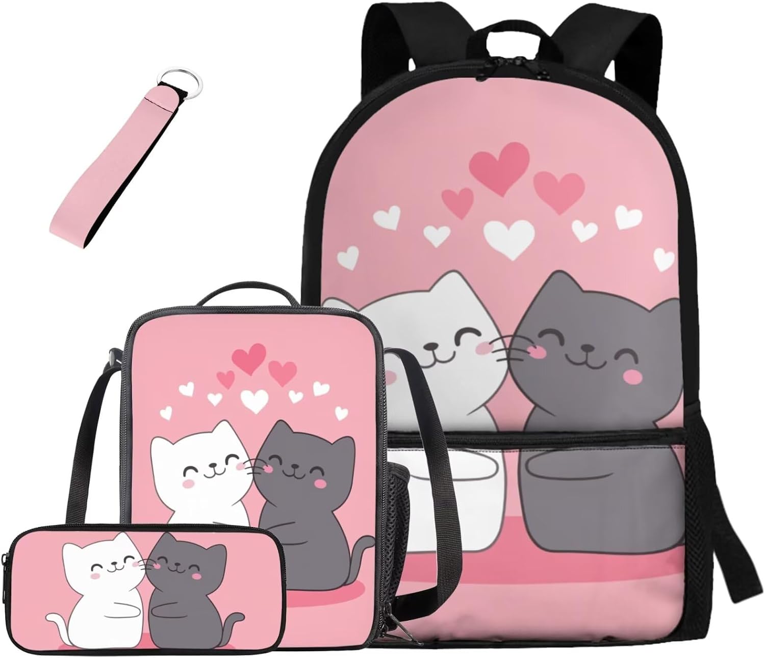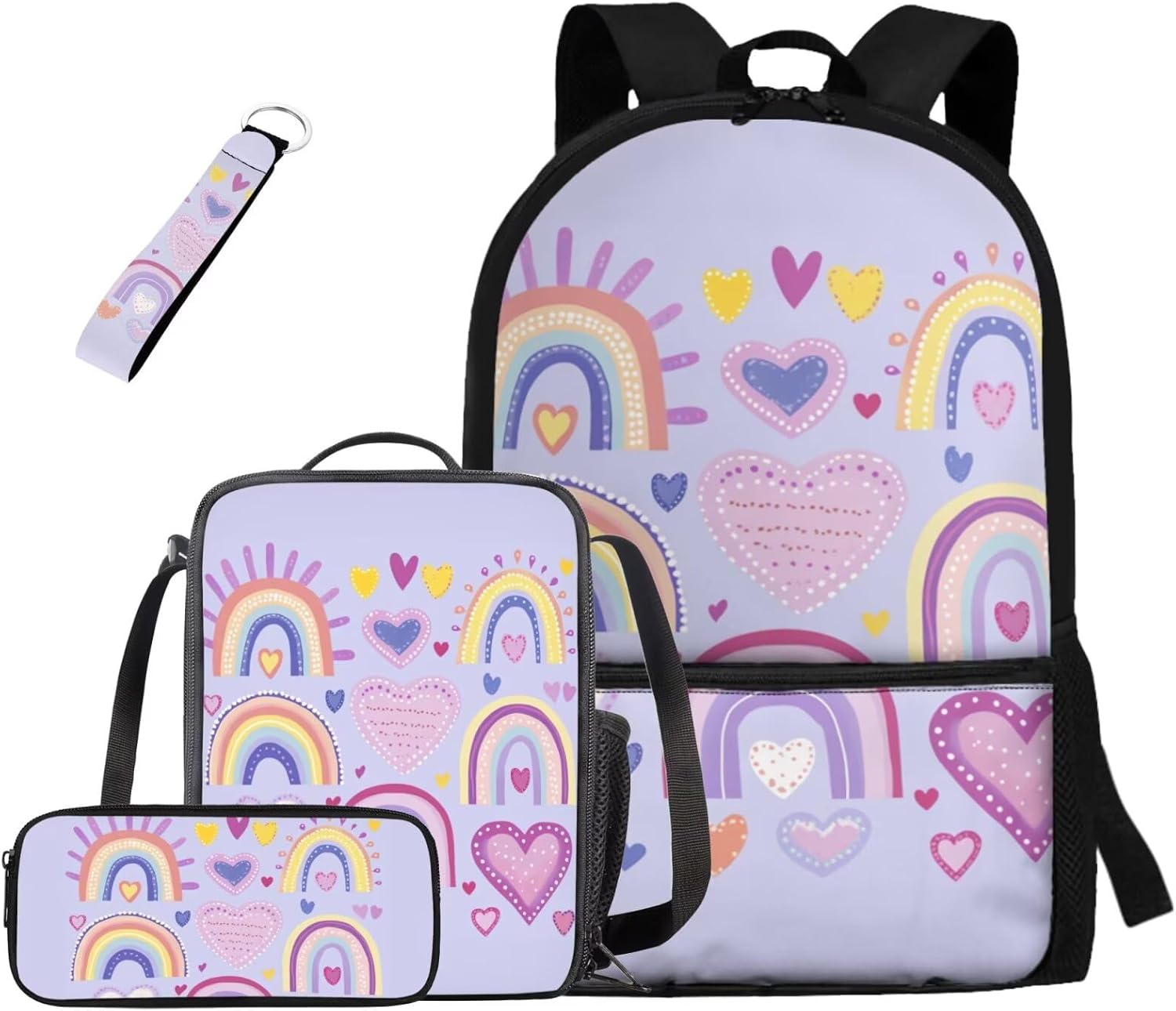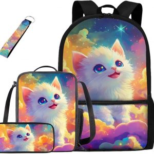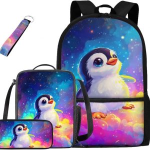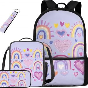 - Multifunctional Design: The 17-inch polyester schoolbag features a spacious main compartment and a front zipper pocket, making it convenient to categorize and store school supplies. The lunch bag is equipped with an insulating lining to keep the food fresh. The pen case is easy to store stationery. The Keychain can connects to the keys, smart key, wallet and bookbag
