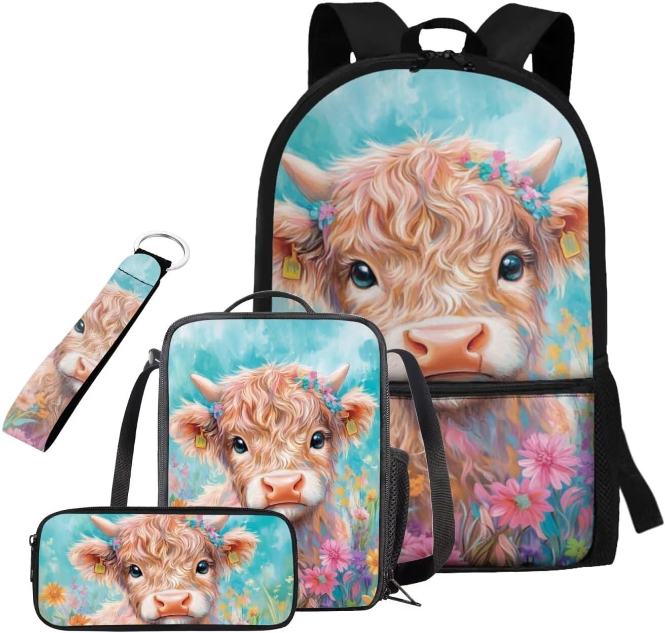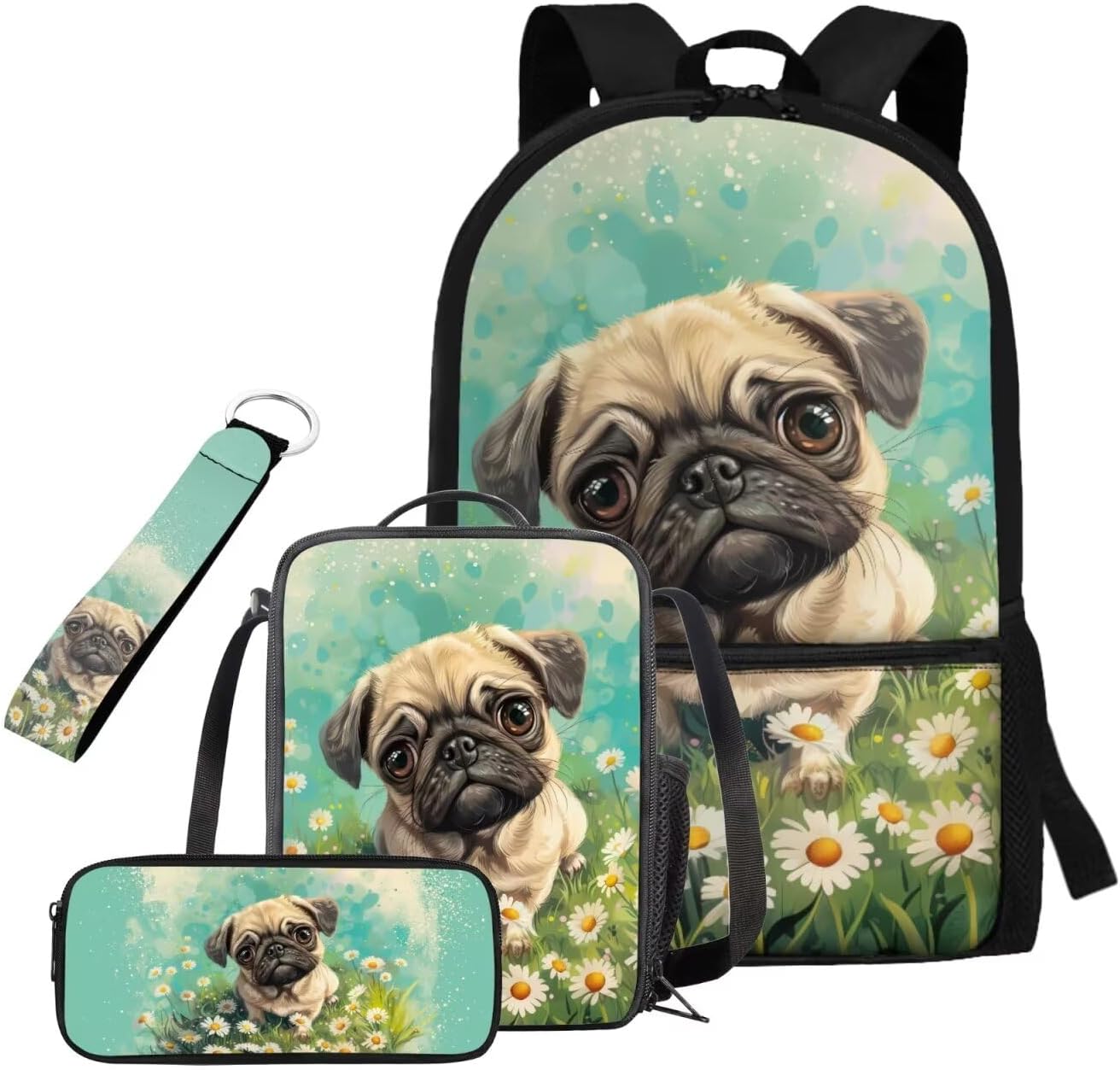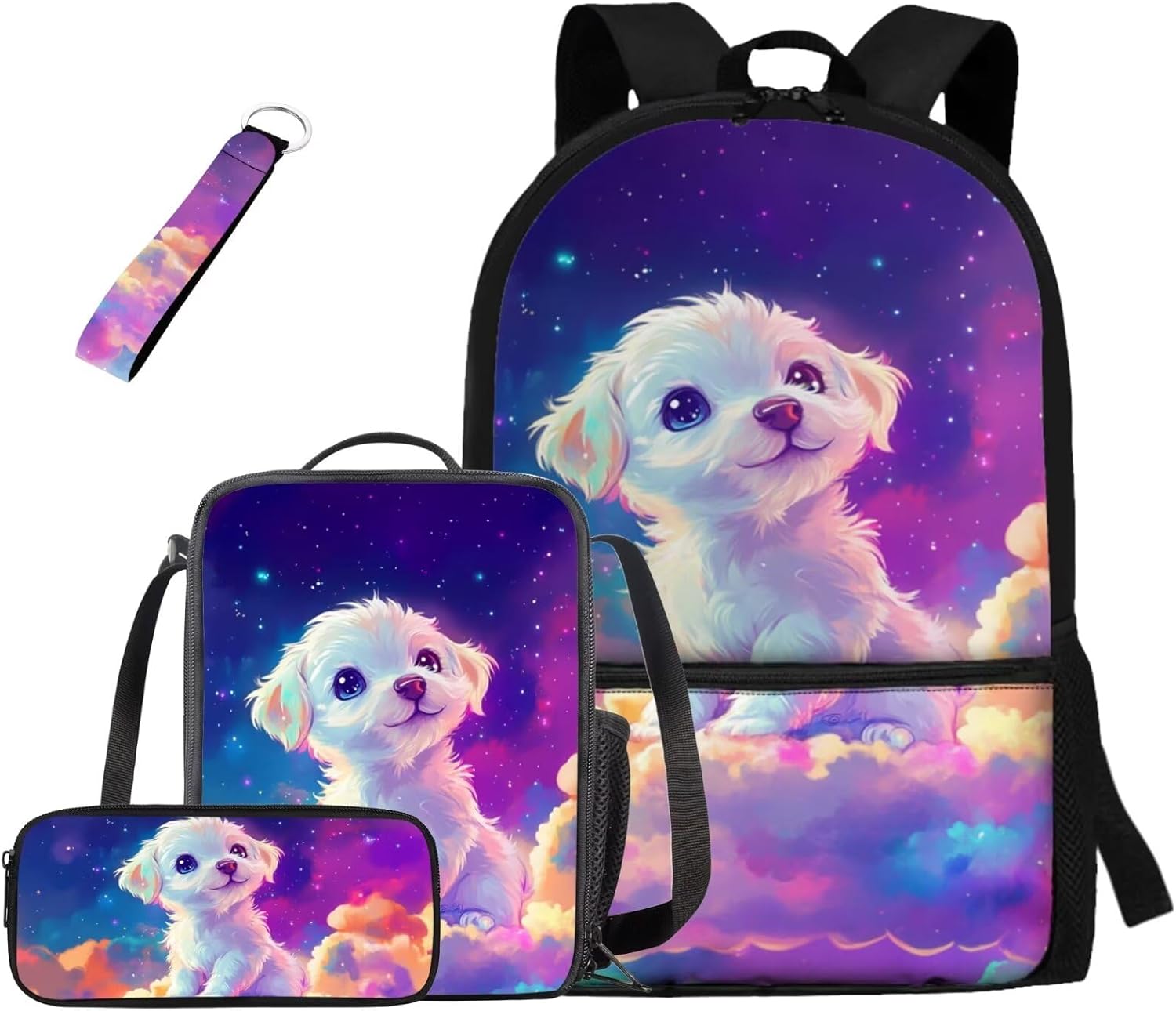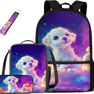 - Multifunctional Design: The 17-inch polyester schoolbag features a spacious main compartment and a front zipper pocket, making it convenient to categorize and store school supplies. The lunch bag is equipped with an insulating lining to keep the food fresh. The pen case is easy to store stationery. The Keychain can connects to the keys, smart key, wallet and bookbag