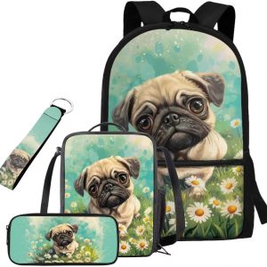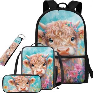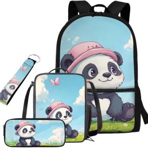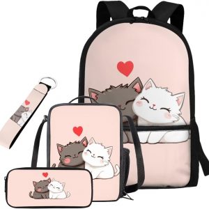 The school bag set is made of polyester fabric, which is durable and water-resistant, making them suitable for daily use and outdoor activities. The backpack also comes with padded shoulder straps and a breathable back panel, reducing shoulder pressure and ensuring comfort even when carrying it for long periods.