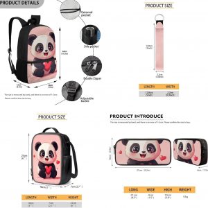 - Large Capacity: The schoolbag is equipped with multiple compartments, allowing for the orderly storage of books, stationery, tablet computers and other items. The lunch bag is equipped with double zippers and a mesh bag, which can store tableware and beverages. The pencil case can neatly store pencils, pens and cards