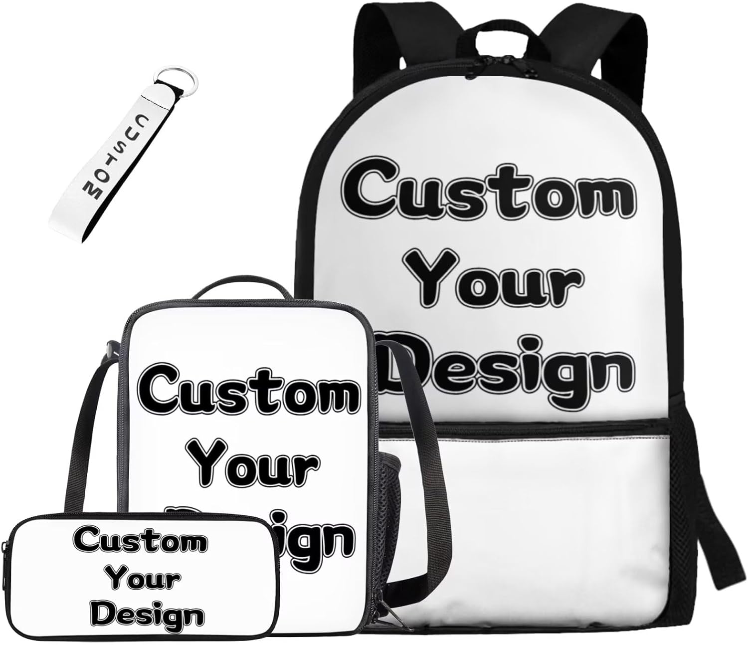 The 17-inch polyester backpack features a spacious main compartment and a zipper pocket, allowing you to organize your books, laptop, and other study materials. The lunch bag is equipped with insulated lining, which can effectively keep your food fresh, ensuring you enjoy a delicious meal at lunchtime. The pencil case has multiple small compartments for easy storage of various stationery. The keychain can connects to the keys, wallet and schoolbag.